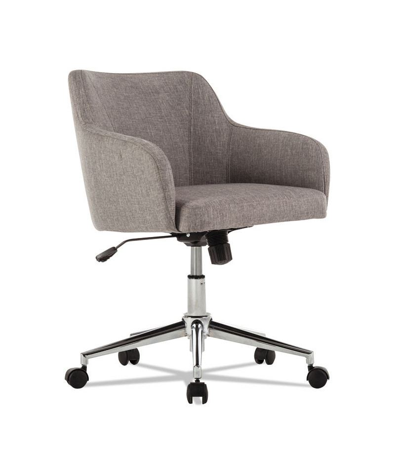 A modern captain's chair with a commanding style. Make a statement at your desk or in the conference room. Cushioned seat and back with durable fabric upholstery. Contoured rounded back and arms for the perfect support. Extended seat edge to help reduce pressure points at the back of the knee. Tilt tension and lock for control when reclining. Chrome five-star base for style and mobility.