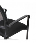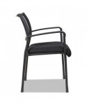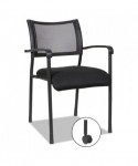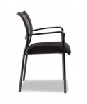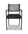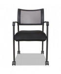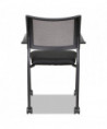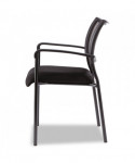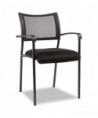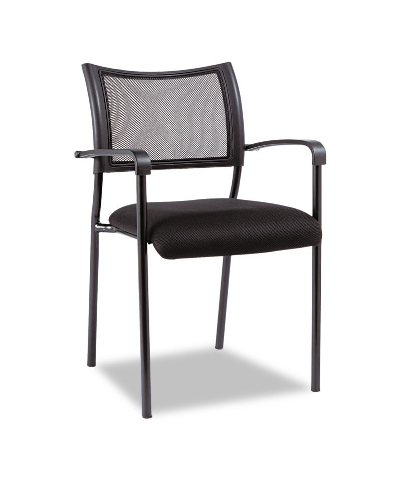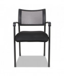 Mesh back chair with cushioned mesh fabric seat for cool comfort. Contoured back provides lumbar support. Durable steel frame with textured matte black finish. Stacks up to five high. Two chairs per carton. Assembly required.