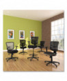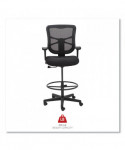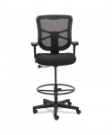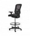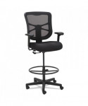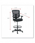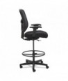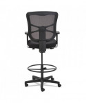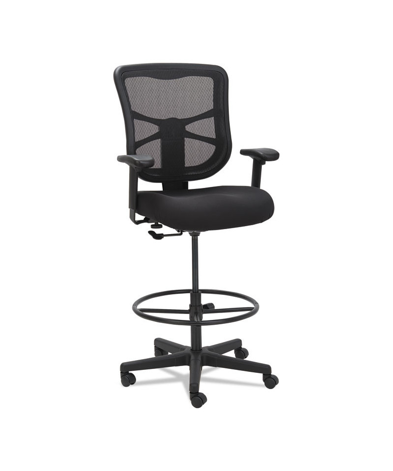 Ergonomically designed stool adjusts to fit multiple users. Cool, breathable mesh back. Contoured seat cushion with waterfall edge to help relieve pressure on knees. Adjustable foot ring for leg support. Weighted steel reinforced five-star base with casters and also compatible with glides, which are sold separately. Height adjustable ratchet back for optimal lumbar support. Height- and width-adjustable arms with soft pads.