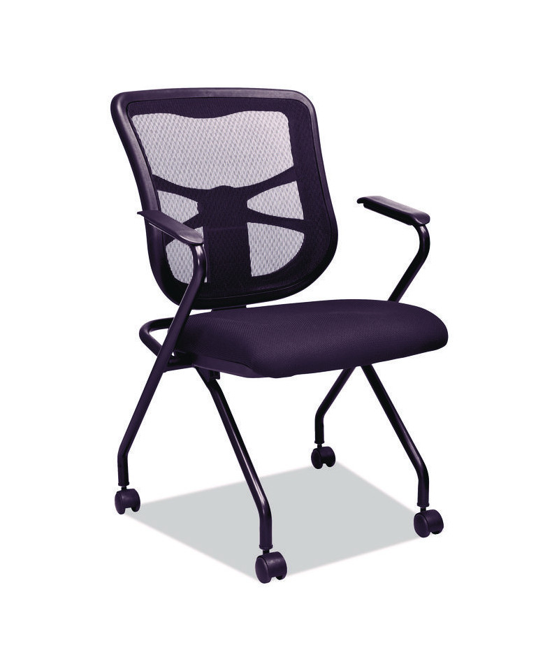 Alera Elusion Mesh Nesting Chairs with Padded Arms, Supports Up to 275 lb, 18.11" Seat Height, Black, 2/Carton