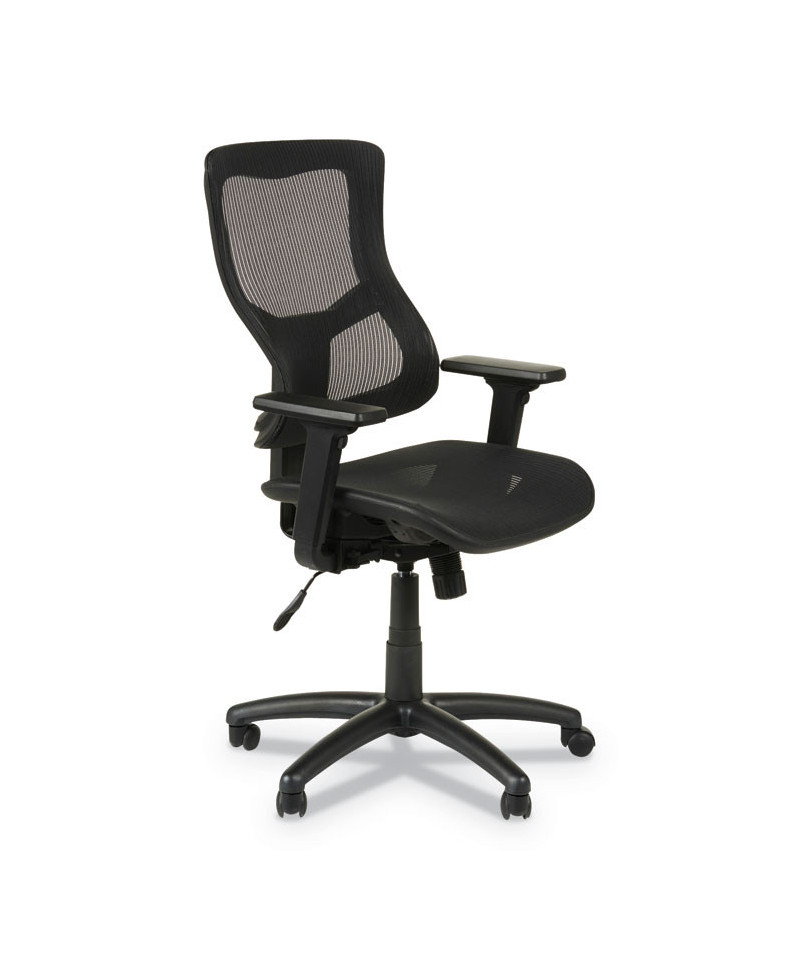 Choose an office chair that makes your workspace a place where you feel good working. The Alera® Elusion® II Series Suspension Mesh Mid-Back Synchro with Seat Slide Chair features comfortable and contemporary design. Its breathable mesh seat and back give you greater air circulation, so you stay cool when your office is warm. Sit back and relax—the synchro-tilt mechanism has a 2-to-1 back to seat angle ratio that keeps your feet on the floor while reclining. Seat slide adjustment allows you to find your ideal seat depth for your height, so it fits your individual needs. Height and width adjustable arms also pivot in and out, enabling you to position your hands and wrists at an ideal angle for typing. Ergonomically designed chair frame encourages proper posture while the height adjustable ratchet back delivers lumbar support, making this an office chair you will enjoy sitting in.