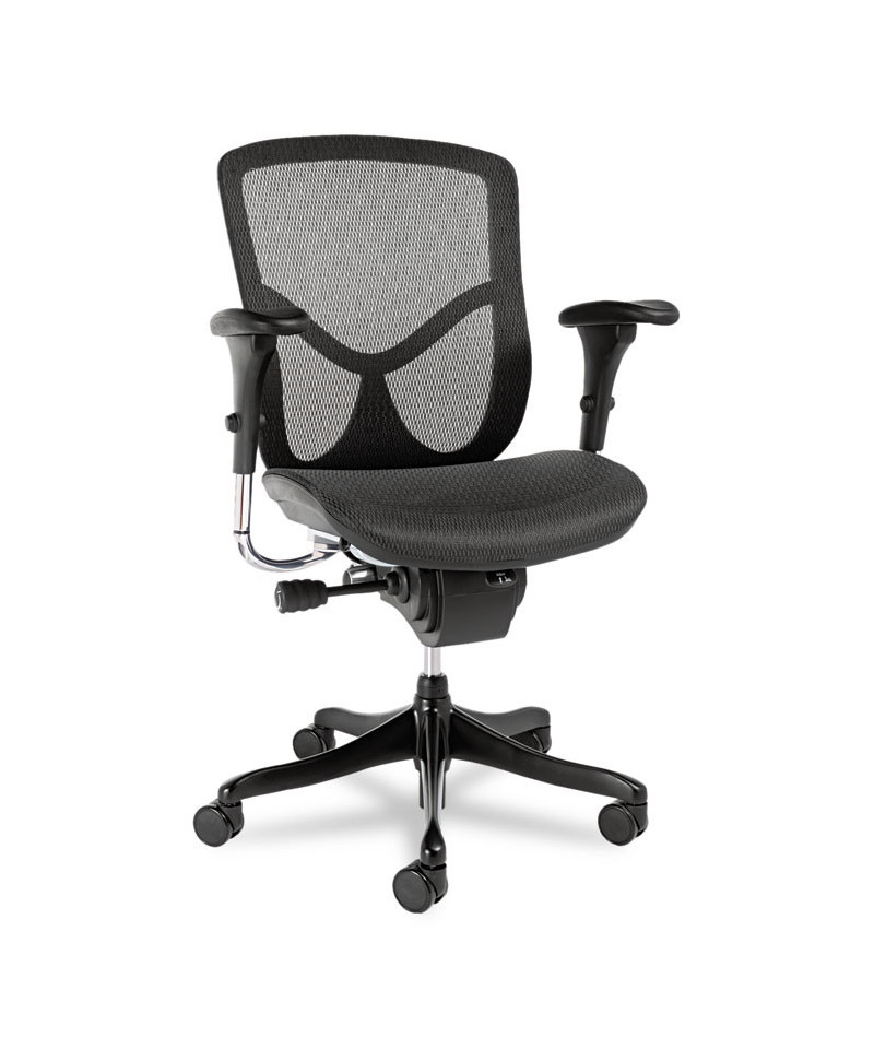 A high-tech aesthetic chair with premium ergonomic features. Synchro-Tilt mechanism offers customized support. Breathable elastic polyester mesh seat and back. Waterfall seat reduces pressure at the back of your knees for improved circulation. Easy reach seat levers for height and back adjustment. Soft arms are adjustable up and down front to back and at angles. Five-star base with casters for easy mobility.