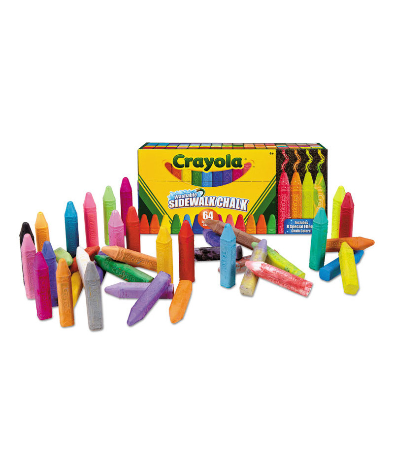 Get inspired with the largest collection of Crayola washable sidewalk chalk in one big box! With so many colors to choose from, you will be bursting with new sidewalk chalk art ideas. Plus, you never have to worry about how to remove sidewalk chalk, water or rain will do the trick! The Ultimate Washable Chalk Collection includes 56 regular chalk sticks and eight special effects sticks two tie dye, two neon glitter, two neon and two regular glitter varieties. Create colorful masterpieces on driveways, sidewalks, and beyond with this washable and classic toy for kids that makes sunny days even brighter.