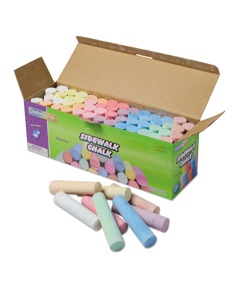 Add to cart Washable Sidewalk Chalk, 16 Assorted Colors, 16 Sticks/Set $3.89 Bright, bold chalk includes exclusive Crayola® crayon colors that wash away with water. Great big outdoor art on sidewalks and driveways with easy...