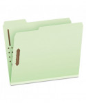Heavy-duty 25 pt pressboard is ideal for frequently accessed files. 2" capacity prong fasteners embossed into front and back covers. Rip-proof tape reinforced gussets.