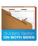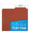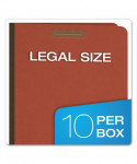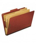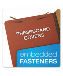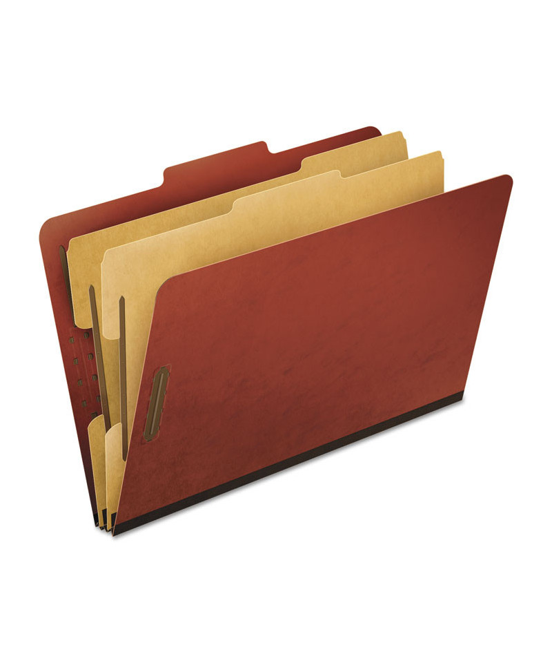 Six-Section Pressboard Classification Folders, Expands 2", 2 Dividers, 6 Embedded Fasteners, Legal Size, Red, 10/Box
