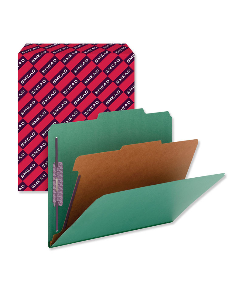 Protect your documents and fingers with Smead™ patented SafeSHIELD® Coated Fastener Technology; the ultimate solution to fastener issues, including paper tears, finger cuts and excessive fastener crinkling. Use colors to signal category or type of project at a glance. Sturdy tear resistant gusset expands to hold up to 2" of material. Fasteners on front and back panels and dividers create four separate filing surfaces within one folder.