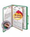 Pressboard Top Tab Classification Folders, Expands 2", 1 Divider, 4 SafeSHIELD Fasteners, Letter Size, Green, 10/Box