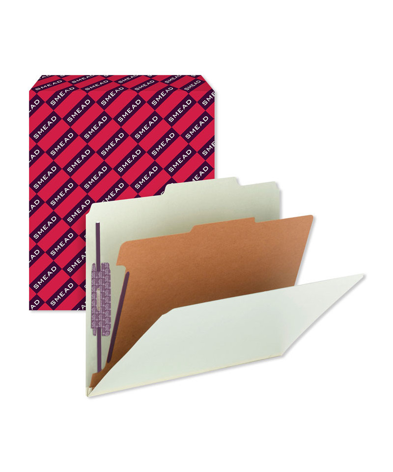 Minimize the time you spend searching for documents and increase the efficiency of your filing system. Smead's Pressboard Classification File Folders with SafeSHIELD Fasteners make it easy to organize your critical information by providing a number of different filing surfaces that can be used to separate your documents in subcategories and keep them in proper sequence. Purposefully designed to provide a solution for the most common fastener issues, our Pressboard Classification File Folders feature SafeSHIELD Coated Fasteners that help you avoid hand injuries, ripped papers and excessive fastener crinkling. The 2" expanding spine made of tear resistant material offers greater storage capacity for bulky projects. Compatible with our Viewables Multipurpose Labels (sold separately).