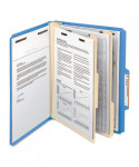 Colored Top Tab Classification Folders, 2/5-Cut Tab, Expands 2", 2 Dividers, 6 SafeSHIELD Fasteners, Letter Size, Blue, 10/BX
