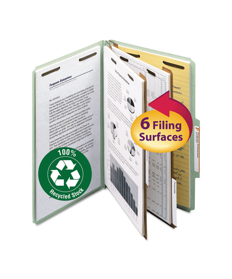 Minimize the time you spend searching for documents and increase the efficiency of your filing system. These recycled pressboard classification file folders enable you to organize your critical information by providing multiple filing surfaces that can be used to separate your documents in subcategories and keep them in proper sequence. Ideal for offices looking to become more sustainable. Perfect for using with drawer filing systems, they feature a 2/5-cut tab in right of center position and are compatible with our Viewables Multipurpose Labels (sold separately).