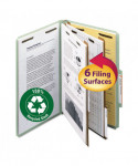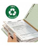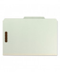 Recycled Pressboard Classification Folders, 2/5-Cut Tab, Expands2", 2 Dividers, 6 Fasteners, Legal Size, Gray-Green, 10/Box
