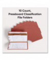 Minimize the time you spend searching for documents and increase the efficiency of your filing system. Smead's Pressboard Classification File Folders with SafeSHIELD Fasteners make it easy to organize your critical information by providing a number of different filing surfaces that can be used to separate your documents in subcategories and keep them in proper sequence. Purposefully designed to provide a solution for the most common fastener issues, our Pressboard Classification File Folders feature SafeSHIELD Coated Fasteners that help you avoid hand injuries, ripped papers and excessive fastener crinkling. The 2" expanding spine made of tear resistant material offers greater storage capacity for bulky projects. Compatible with our Viewables Multipurpose Labels (sold separately).