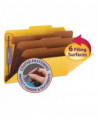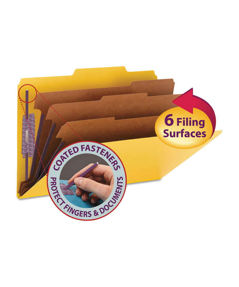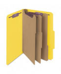 Pressboard Top Tab Classification Folders, 2/5 Tab, Expands 3", 3 Dividers, 8 SafeSHIELD Fasteners, Legal Size, Yellow, 10/BX