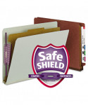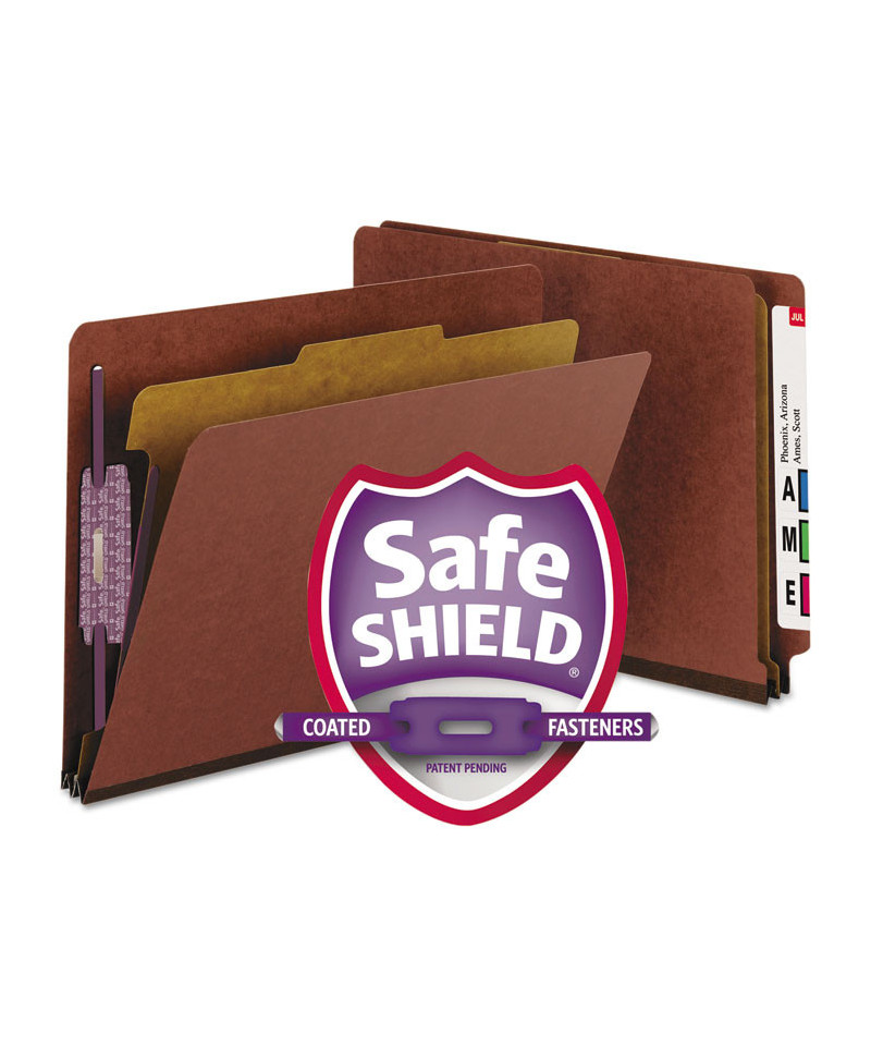 The ultimate classification folder when safety and security are most important. SafeSHIELD® bonded fasteners add protection for papers and fingers, while also reducing fastener crinkling. Dividers with tabs and fasteners on both sides let you store information under several subdivisions, and fasteners on the front and back panels add two more filing surfaces. Made of heavyweight pressboard material for extra durability. Use different colors for different types of projects. Labels sold separately.