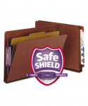 End Tab Pressboard Classification Folders, Expands 2", 1 Divider, 4 SafeSHIELD Fasteners, Letter Size, Red, 10/Box
