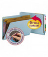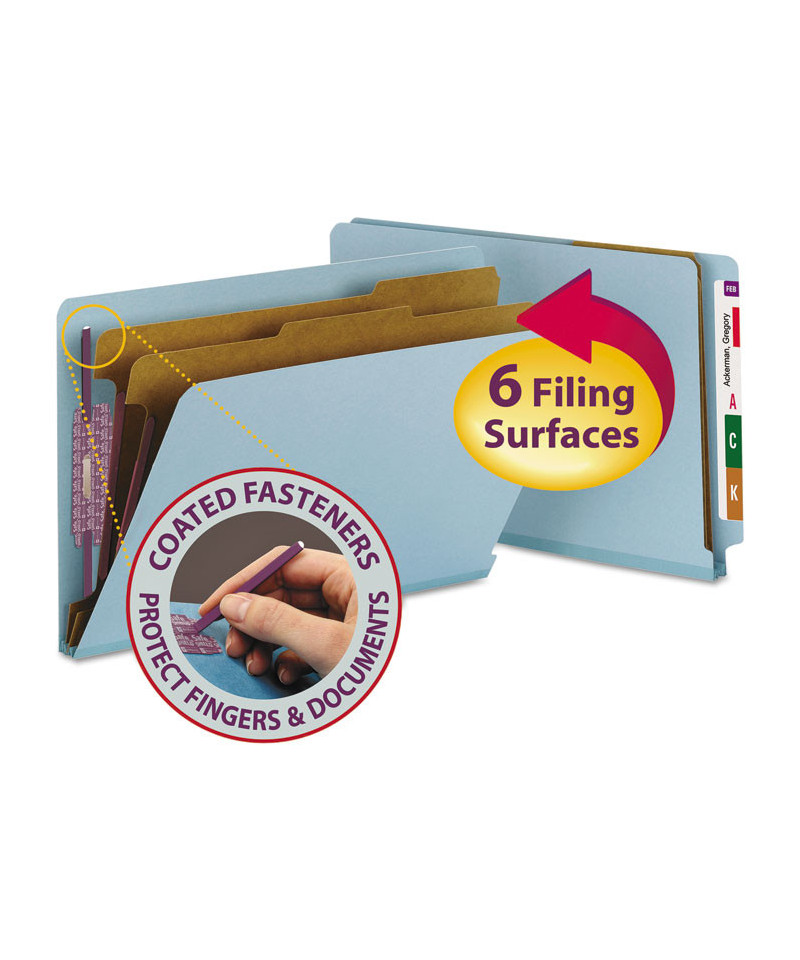 End Tab Pressboard Classification Folders, Expands 2", 2 Dividers, 6 SafeSHIELD Fasteners, Legal Size, Blue, 10/Box