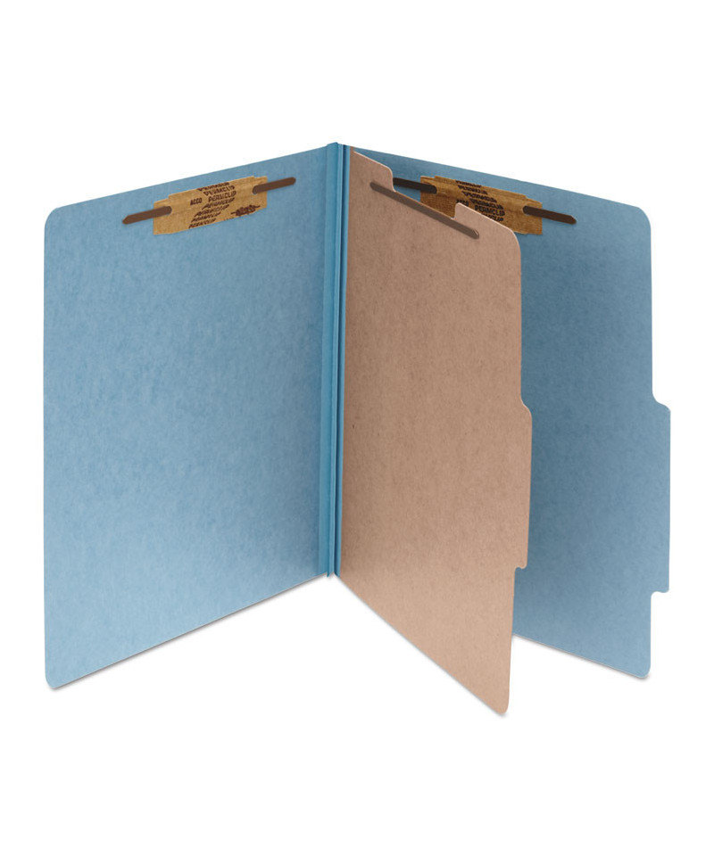 Choose a classification folder with four, six or eight parts to meet your needs. Durable pressboard covers with fasteners provide snag-free document filing. Color-matched, reinforced Tyvek® expandable file gusset ensures long-term use. Tabs for titling included on covers and dividers.