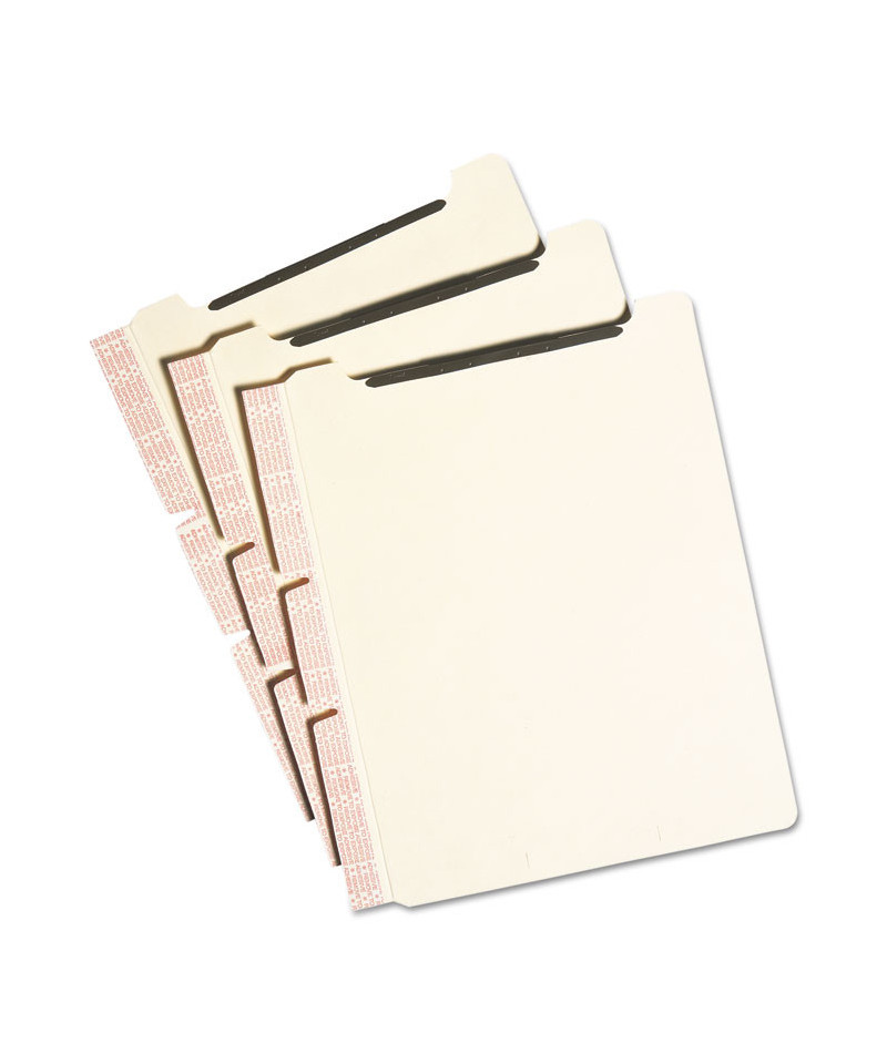 Add organization to any top tab or end tab folder. When used in standard fastener folders, these dividers classify papers in up to four categories. To create additional filing surfaces, add self-adhesive or twin prong fasteners to your dividers. Add subdivision to any file. Simply peel off protective strip and press into any top tab or end tab folder.