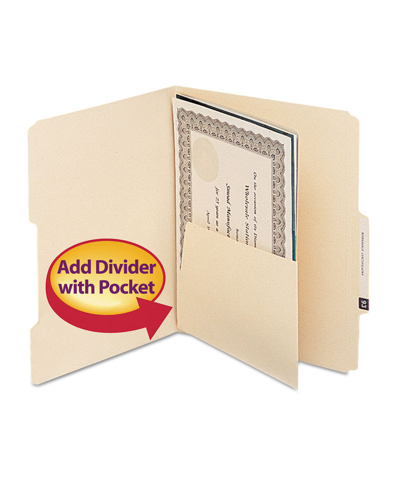 Self-Adhesive Folder Dividers with 5.5" Pockets for Top/End Tab Folders, Fasteners, Letter Size, Manila, 25/Pack