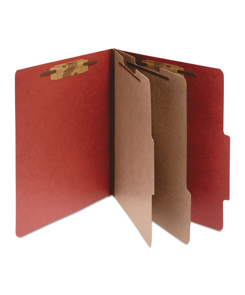Pressboard Classification Folders, 2/5-Cut Tab, Expands 3", 2 Dividers, 6 Fasteners, Letter Size, Earth Red, 10/Box