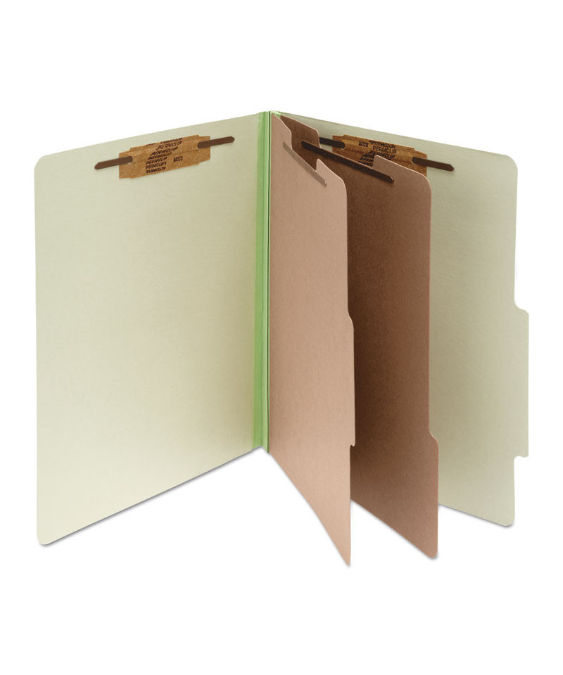 Pressboard Classification Folders, 3" Expansion, 2 Dividers, 6 Fasteners, Letter Size, Leaf Green Exterior, 10/Box