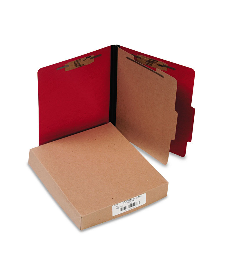 ColorLife PRESSTEX Classification Folders, 2/5-Cut Tab, Expands 2", 1 Divider, 4 Fasteners, Letter Size, Executive Red, 10/BX