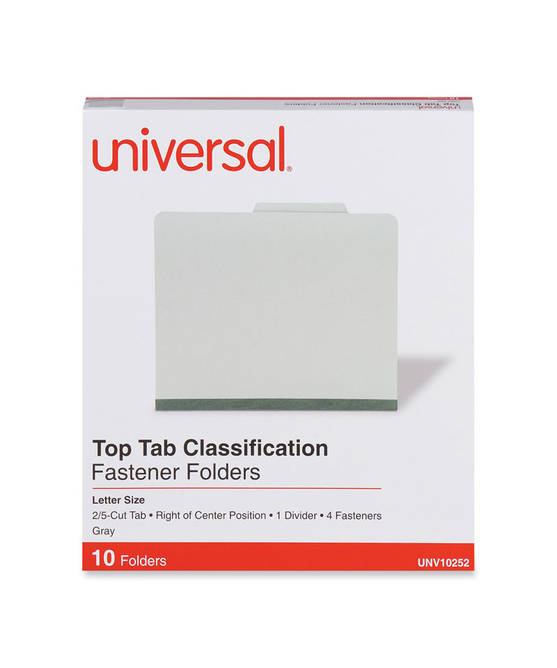 Protect your paperwork with moisture-resistant classification folders. The multiple fasteners and dividers allow you to create subcategories for home or office filing. Customized filing allows you to simply sort and seek paperwork by subject or document type. 2/5-cut tabs with dividers provide space for labeling and easy file identification. Folders are built with heavyweight paper construction to withstand repeated use.