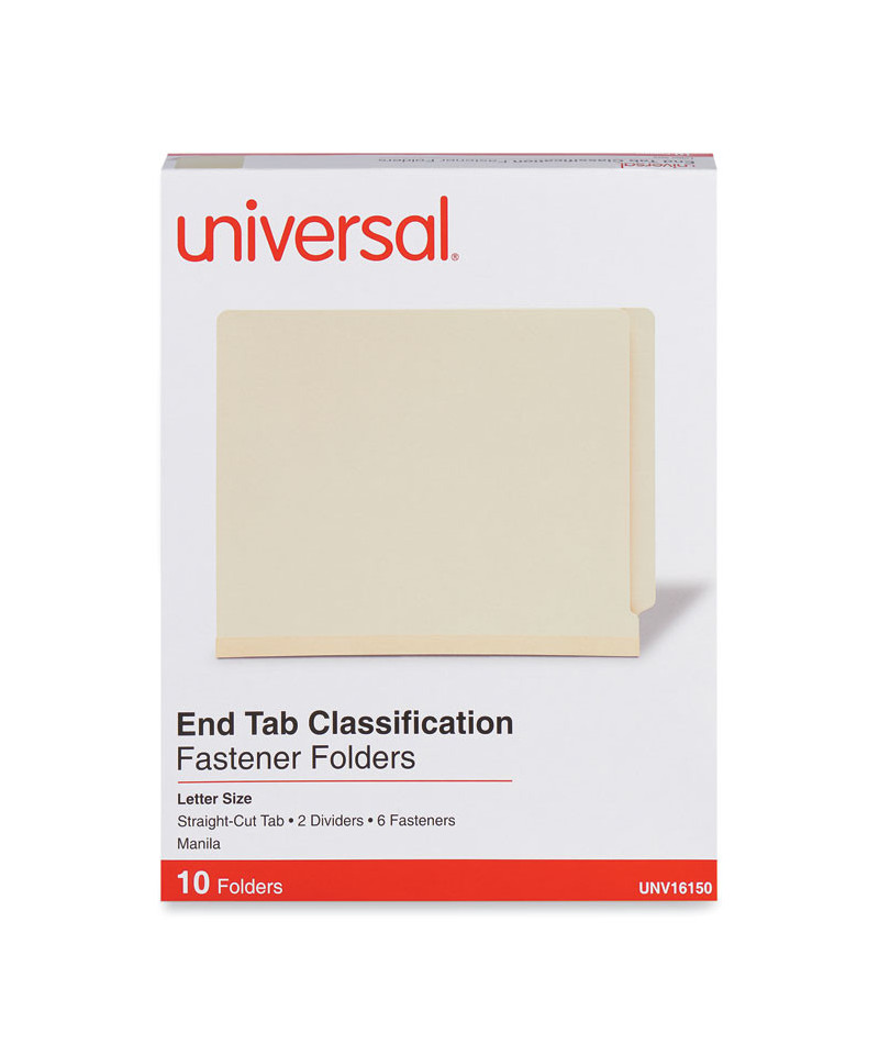 Manila End Tab Classification Folders, Straight Tab, Expands 2", 2 Dividers, 6 Fasteners, Letter Size, Manila, 10/Box