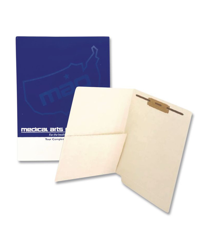 Keep reports, test results, notations and other important materials together within broader files when you choose Medical Arts Press® Slash Pocket End Tab Fastener Folders. Handy slash pocket accommodates unwieldy materials such as photos, x-rays and similar items while the embedded fasteners allow you to further subdivide your files. Extended end tabs simplify labeling, browsing and retrieval, making them a smart solution for shelf filing systems.