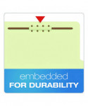 Pressboard Top Tab Classification Folders, 2/5-Cut Tab, Expands 2.5", 2 Dividers, 6 Fasteners, Legal Size, Light Green, 10/BX