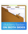 Distinctive colors enable easy color-coding, and durable pressboard covers ensure reliable performance. Strong kraft dividers allow you to subdivide documents, while Tyvek® tape spines reliably expand with your projects. Embedded fasteners keep documents secure and allow you to file in sequential order. Scored tabs provide plenty of room for labels and hand-written titles. Undercut front covers streamline file reference and retrieval.