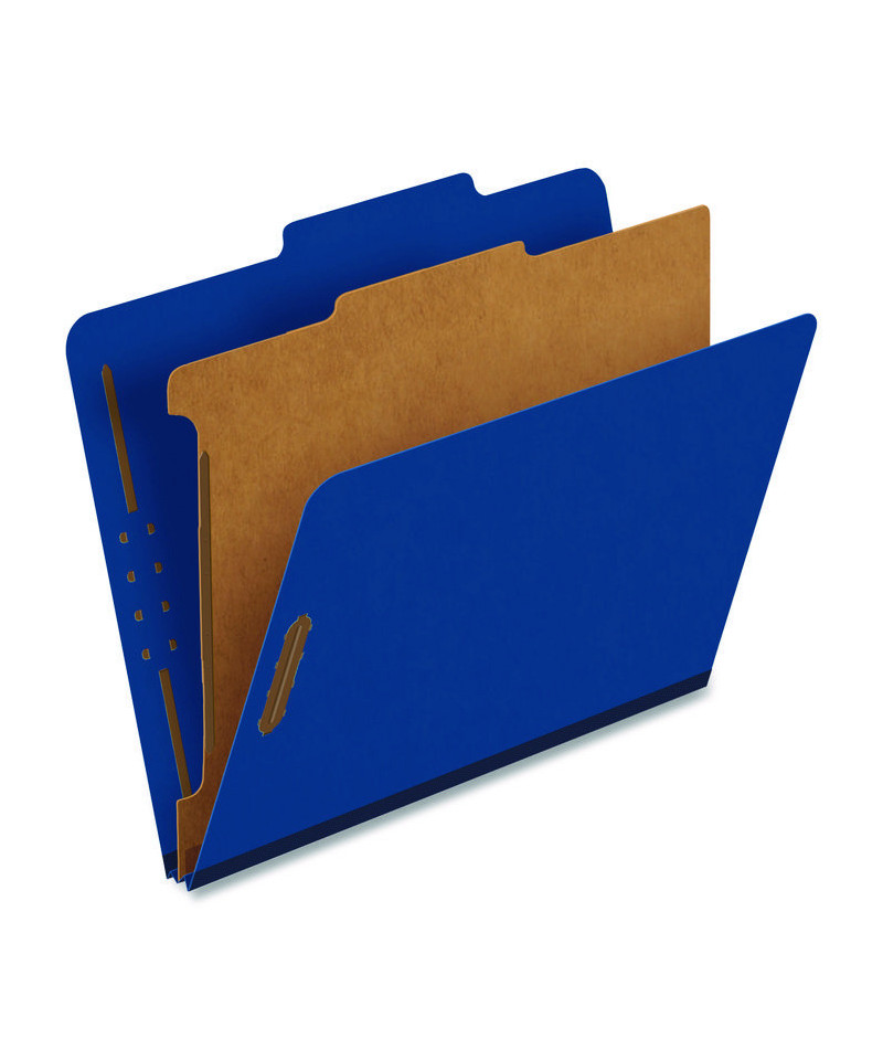 Pressboard Top Tab Classification Folders, 2/5-Cut Tab, Expands 1.75", 1 Divider, 4 Fasteners, Letter Size, Dark Blue, 10/Box