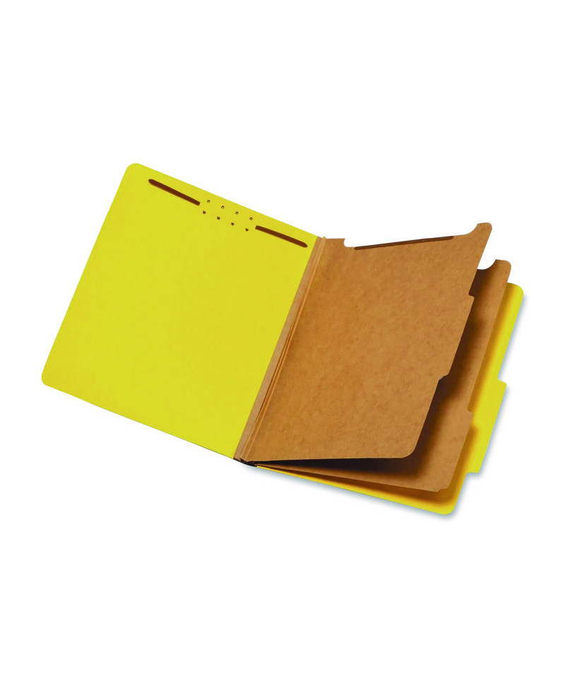 Distinctive colors enable easy color-coding, and durable pressboard covers ensure reliable performance. Strong kraft dividers allow you to subdivide documents, while Tyvek® tape spines reliably expand with your projects. Embedded fasteners keep documents secure and allow you to file in sequential order. Scored tabs provide plenty of room for labels and hand-written titles. Undercut front covers streamline file reference and retrieval.