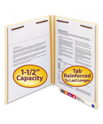 Distinctive colors enable easy color-coding, and durable pressboard covers ensure reliable performance. Strong kraft dividers allow you to subdivide documents, while Tyvek® tape spines reliably expand with your projects. Embedded fasteners keep documents secure and allow you to file in sequential order. Scored tabs provide plenty of room for labels and hand-written titles. Undercut front covers streamline file reference and retrieval.