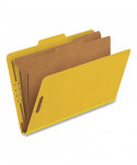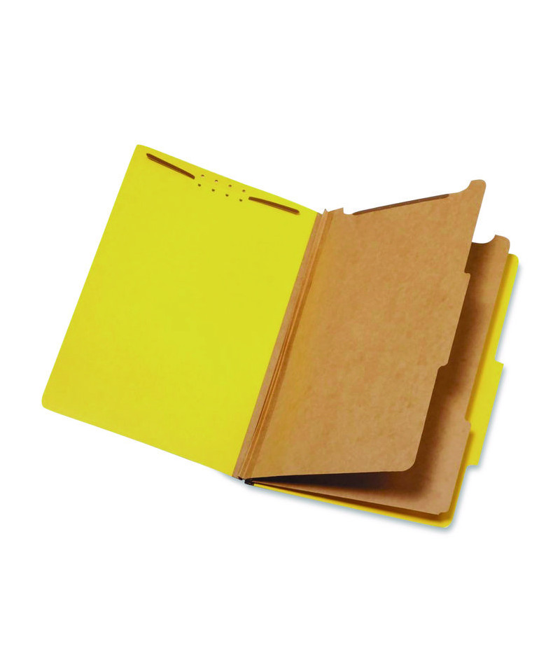 Pressboard Top Tab Classification Folders, 2/5-Cut Tab, Expands 2.5", 2 Dividers, 6 Fasteners, Legal Size, Yellow, 10/Box