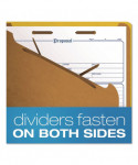 Distinctive colors enable easy color-coding, and durable pressboard covers ensure reliable performance. Strong kraft dividers allow you to subdivide documents, while Tyvek® tape spines reliably expand with your projects. Embedded fasteners keep documents secure and allow you to file in sequential order. Scored tabs provide plenty of room for labels and hand-written titles. Undercut front covers streamline file reference and retrieval.