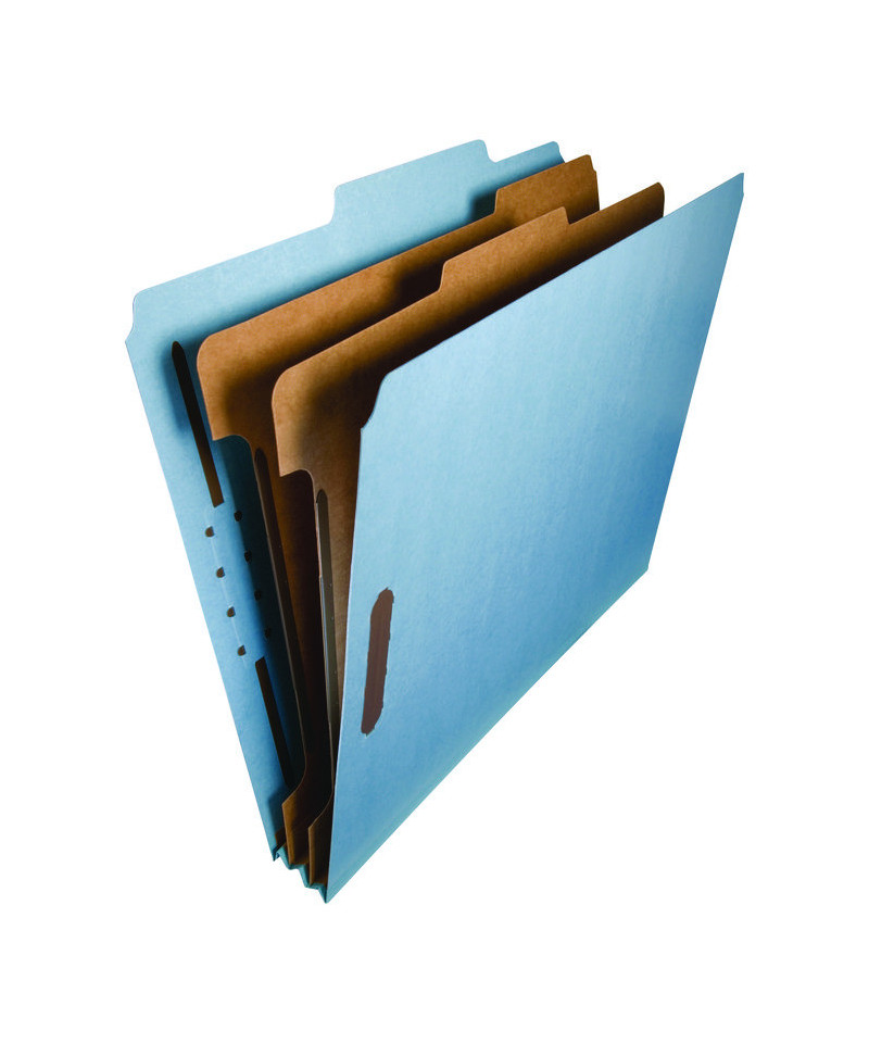 Recycled Pressboard Classification Folders, 2/5-Cut Tab, Expands 2", 2 Dividers, 4 Fasteners, Letter Size, Blue, 10/Box