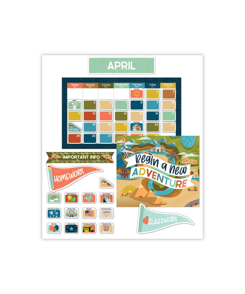 The Carson Dellosa Calendar Bulletin Board Sets make it easy to keep up with the seasons, schedule, and weather. Ideal for providing students with a year-round visual to stay informed on the date and time of year. Liven up any classroom with this versatile calendar set. Each practical and colorful piece will keep students in tune with calendar concepts. Showcase holidays and highlight special days with included calendar cover-ups. Use the set as a focal point for any learning space.