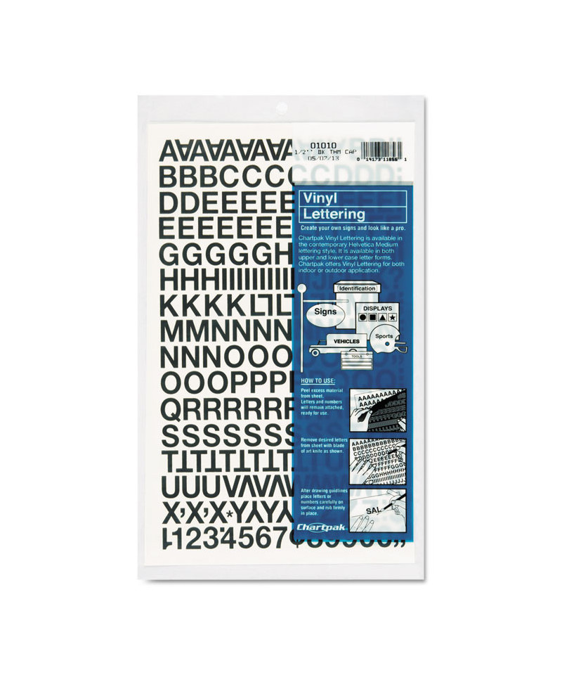 For signs, posters and equipment identification. Self adhesive vinyl will stick to most clean, dry surfaces. Can be used indoors or outdoors. Punctuation and monetary symbols included. Permanent adhesive.