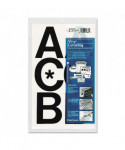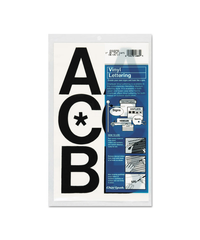 For signs, posters and equipment identification. Self adhesive vinyl will stick to most clean, dry surfaces. Can be used indoors or outdoors. Punctuation and monetary symbols included. Permanent adhesive.