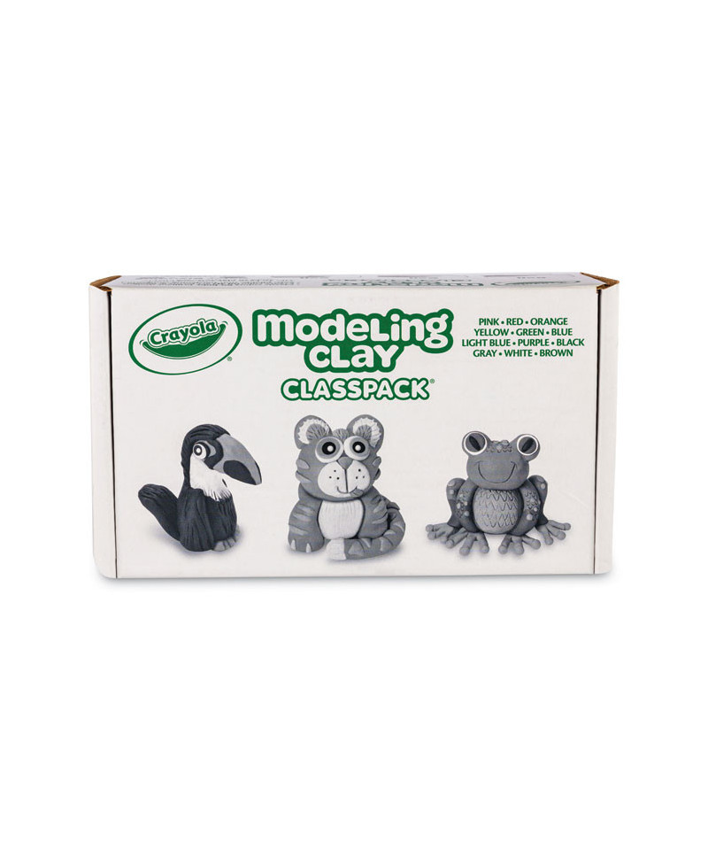Shape, build and sculpt! Classroom activities just got more fun with 12 colors of Crayola Modeling Clay included in this Crayola Classpack Set. This 24 piece kit of clay for kids, gives little artists everything they need to mold soft sculptures with a variety of colors that will inspire them to create in 3D. This versatile, non-hardening clay is completely reusable. It even stays soft after molding, ensuring it can keep up with your child's imagination. The clay also resists water thanks to its wax and oil-based formula, further lengthening its lifespan. Clay sculptures of animals, cartoons, people and outdoor scenes are just the beginning of what kids can create with this non-hardening, reusable clay. Crayola modeling material is a stable for classroom projects, school assignments, and at home arts and crafts. Makes a great gift for teachers and kids ages 4 and up.
