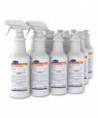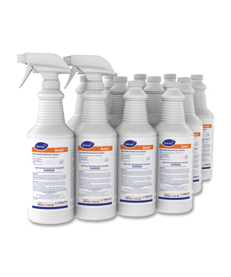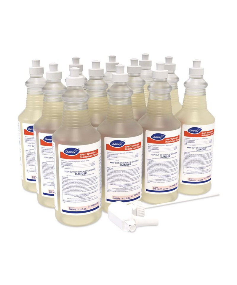 Sporicidal disinfectant cleaner cleans, disinfects and deodorizes hard, nonporous surfaces in one labor saving step, with no rinsing required. Effective in 4 minutes against Clostridium difficile (C. diff) spores. Bleach-based formula eliminates quat-binding concerns. Designed for use on hard, nonporous surfaces such as those found in hospitals and other healthcare facilities. No added fragrances or dyes. Great for cleaning and disinfecting sinks, faucets, fixtures, bathrooms, restrooms, tubs, showers and more. Due to the COVID-19 pandemic, the number of trigger sprayers included with the purchase of this item will be at the sole discretion of the manufacturer based on availability.