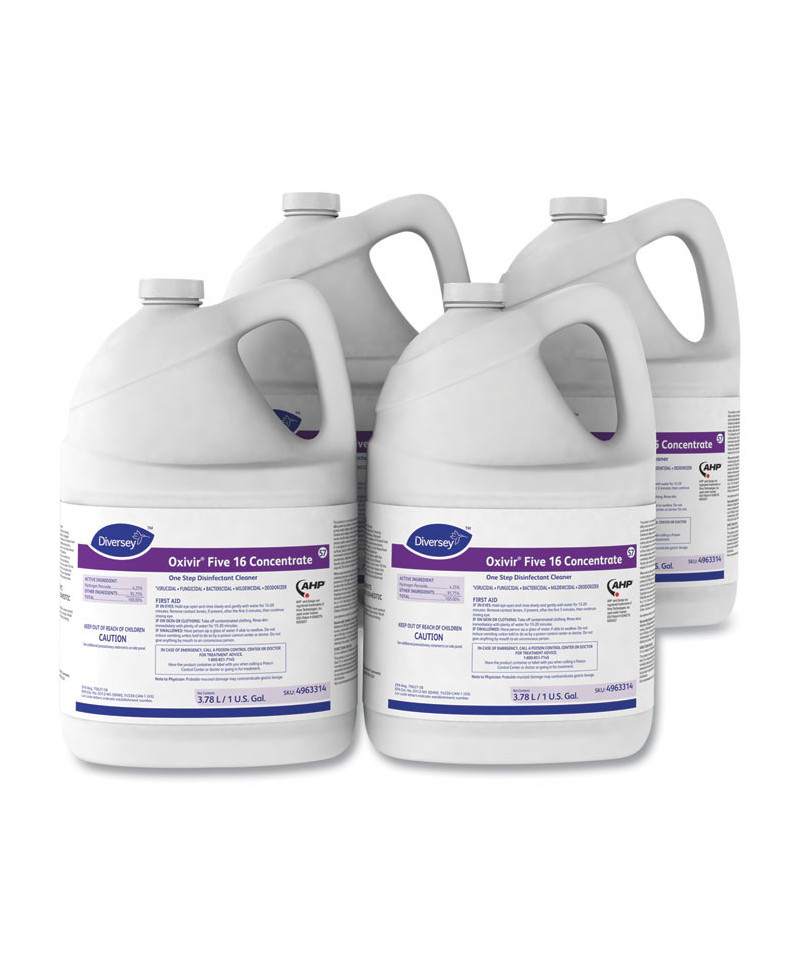 Proprietary Accelerated Hydrogen Peroxide (AHP) based disinfectant-cleaner delivers fast, effective cleaning performance. At a 1:16 dilution ratio, product disinfects hard-nonporous surfaces in five minutes. Use as a virucide, bactericide, fungicide, mildewcide and a non-food-contact sanitizer. Kills MRSA, norovirus and canine parvovirus.