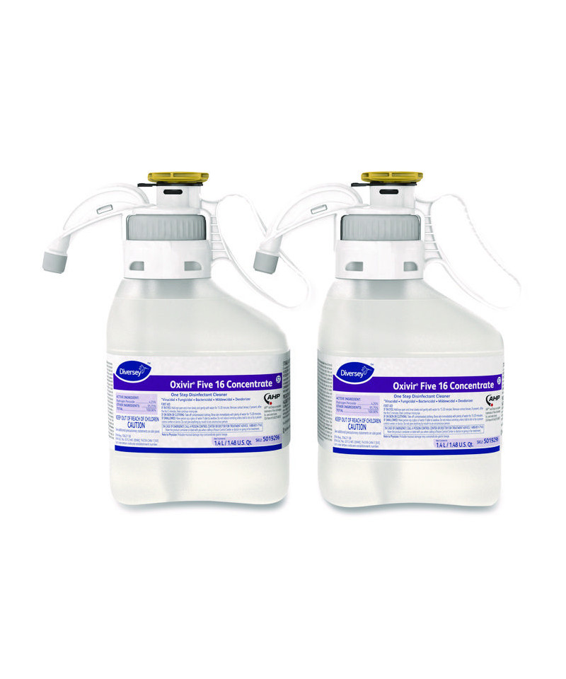 A one-step disinfectant cleaner based on proprietary Accelerated Hydrogen Peroxide (AHP®) technology to deliver fast, effective cleaning performance. At 1:16 dilution, disinfects in five minutes. Virucide, bactericide, fungicide, mildewcide and non-food contact sanitizer. Kills MRSA, norovirus and canine parvovirus. Concentrate delivers economical performance. Meets bloodborne pathogen standards for decontaminating blood and body fluids. For use on hard, inanimate, nonporous surfaces such as floors, walls, porcelain and plastic surfaces in hospitals, nursing homes, schools, colleges and hotels. Colorless.