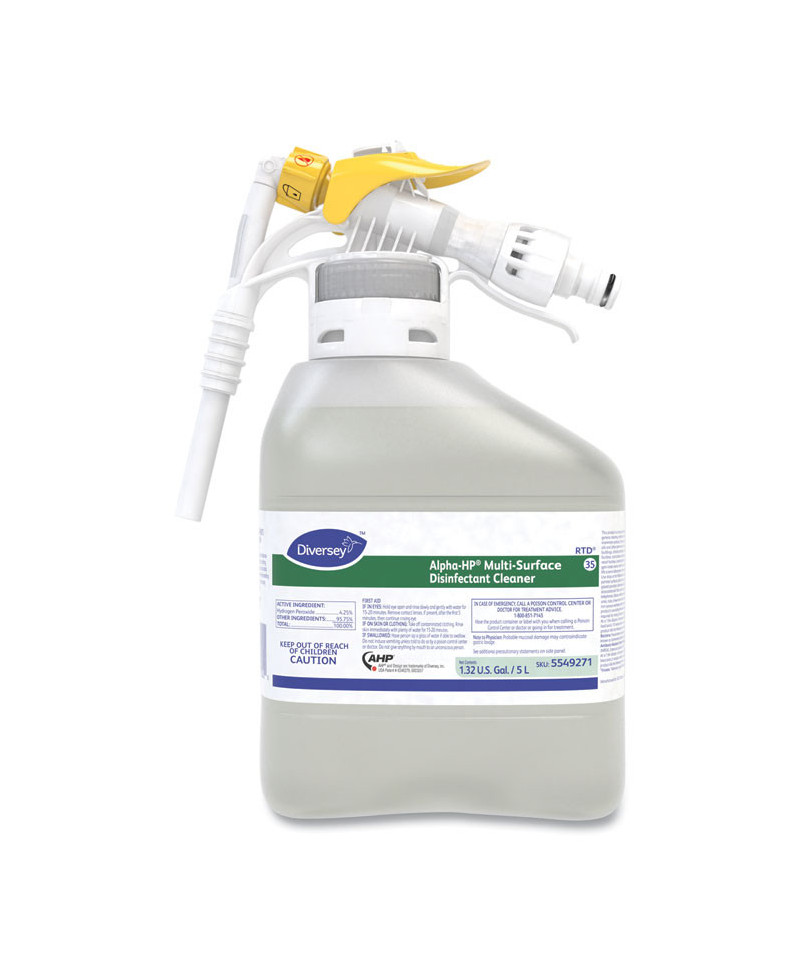 All-in-one, multipurpose cleaner concentrate based on Accelerated Hydrogen Peroxide (AHP®) technology formulated with low levels of hydrogen peroxide. High productivity cleaning with no rinsing required. Cleans and brightens surfaces safely and easily. Three dilution rates provide a complete cleaning system for hard surfaces and carpet. Not for use on brass or copper.