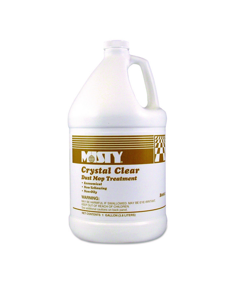 Crystal clear dust mop treatment is a dressing for dust mop heads to aid in the removal of dust, dirt, and other abrasive matter from floor surfaces. Mop heads treated with this compound act as a "dust magnet" to attract and hold particles until mop is cleaned or laundered. Treatment is non-oily and leaves a dry, protective, plasticized film on the surface of wood, asphalt, linoleum, vinyl, vinyl composition, rubber, terrazzo, concrete and gymnasium floors. Will not harm waxed or finished surfaces, and floors appear brighter and more lustrous.
