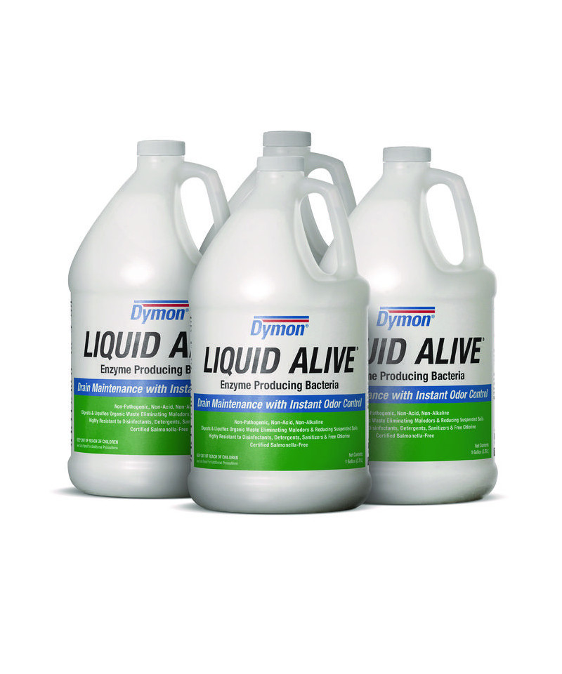 Enzyme producing bacteria digests and liquefies organic waste, grease and food by-products, helping to eliminate malodors and reduce suspended soils--while leaving a pleasant fragrance. Solution is highly resistant to disinfectants, detergents, sanitizers and free chlorine. Safe, non-toxic, non-acid and non-alkaline.