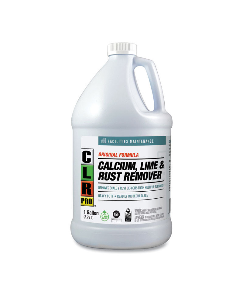 Powerful, trusted multi-use cleaner dissolves even the hardest calcium and lime buildup, rust, mineral deposits, hard water stains, soap scum, and oxidation. Certified EPA's Safer Choice for safer chemistry means that this formula is safe for use in a wide variety of applications including dishwashers, coffeepots, sinks, toilets, glass, siding, stucco, sprinkler systems and more! CLR PRO Calcium, Lime and Rust Remover is NSF Registered and is approved for use in food processing, food storage, and food service facilities. Plumbing and septic safe. Phosphate-, bleach-, ammonia- and alcohol-free.