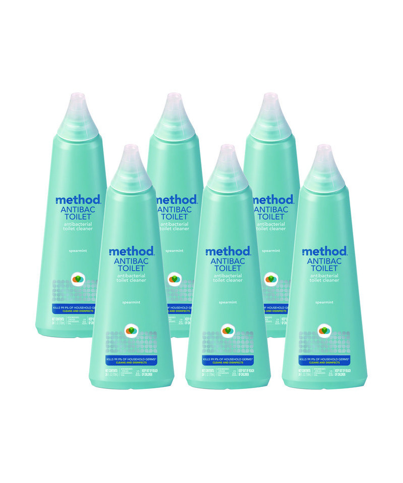This cleaner uses ingredients like citric acid to clean and sanitize in one easy step. Kills 99.9% of germs such as Influenzas A Flu Virus, Staphylococcus aureus, Rhinovirus, Escherichia coli, Enterobacter aerogenes, and Salmonella enterica on hard, non-porous surfaces when used as directed. Use product as a toilet bowl cleaner, toilet seat cleaner and under to clean under the rim and disinfect. Leaves a crisp spearmint scent.